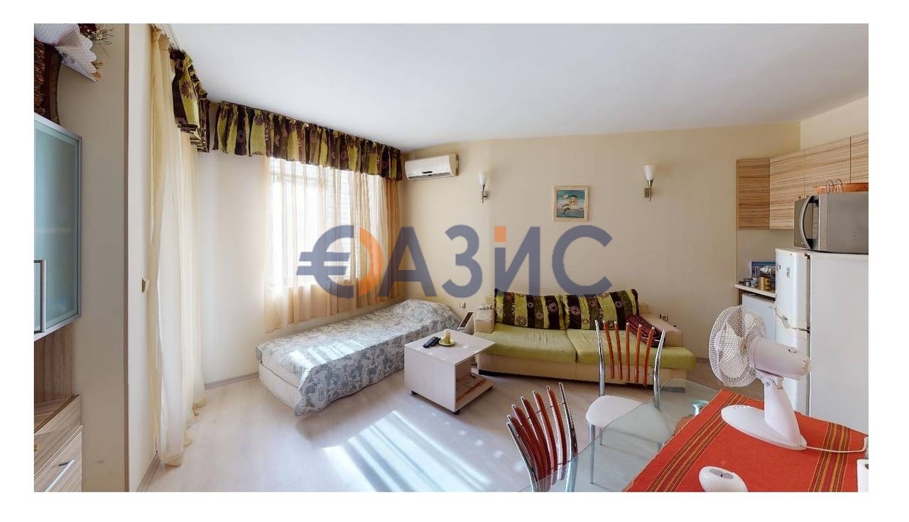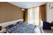 Състои се от антре, дневна с кухненски бокс, отделна спалня, баня с тоалетна и тераса. Апартамент с добър ремонт, кухня с всички необходими уреди. Банята включва качествен санитарен фаянс, душ. Отделна спалня също е обзаведена. Климатици. От дневната и спалнята има изход към обща тераса. Апартаментът е предвиден не само за лятото, но и за постоянно живеене.