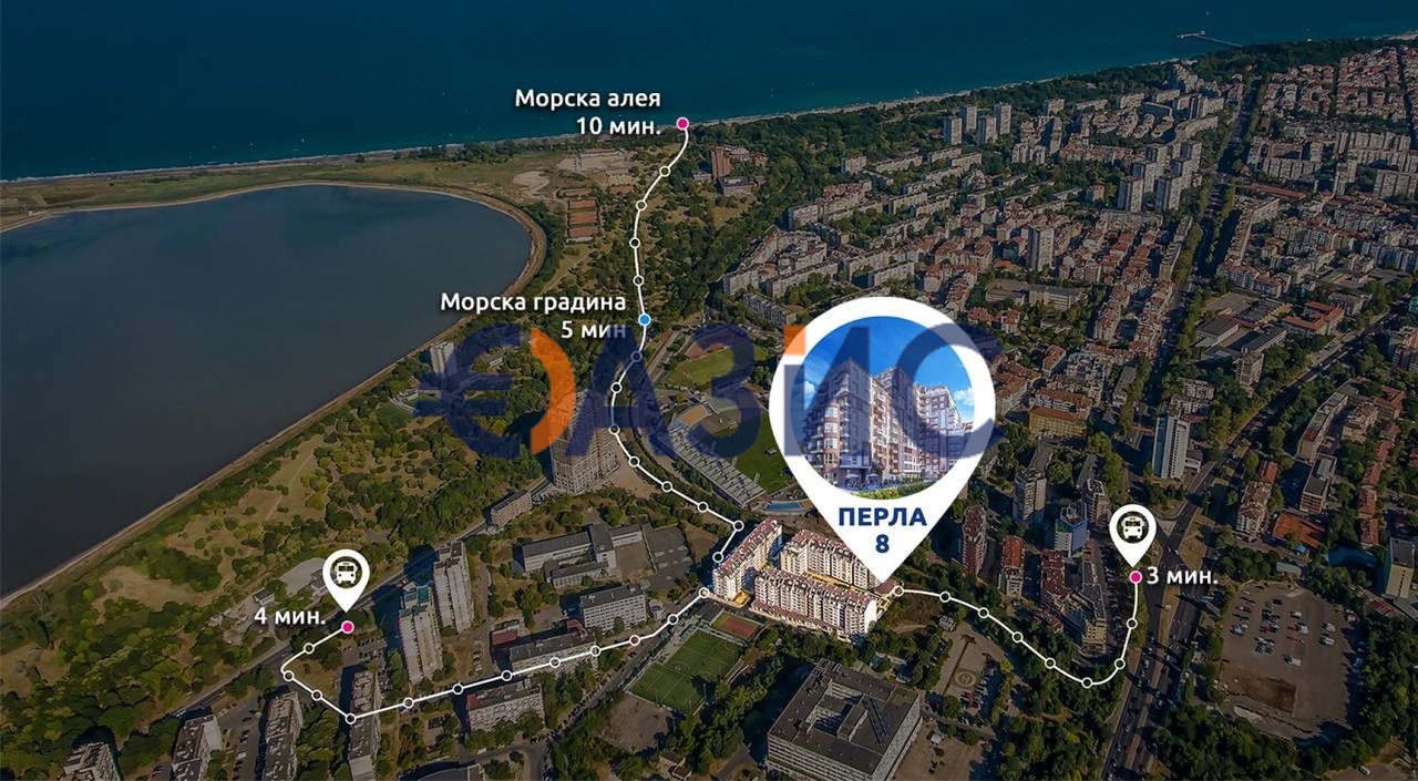 Затворен комплекс „Перла“, до момента, представлява седем изградени и въведени в експлоатация сгради с Акт 16. Новият блок "Перла 8" ще е естетически завършек на комплекса. С построяването на двете сгради, които ще представляват новия блок 8, комплексът ще е напълно завършен и още по-добре ще съчетае удобствата в комплекса със сигурност с качество и стил. С изграждането на двете нови сгради, към затвореният комплекс, ще бъде добавен още един открит басейн на няколко нива, вливащ се във вече съществуващия. Ще бъдат осигурени и повече паркови пространства за собственици, притежаващи недвижими имоти в комплекса. Разстоянието до летище Бургас е 8 км. Разстоянието до летище Варна е 118 км.