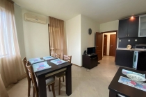 Просторен тристаен апартамент подходящ за целогодишно живеене. Състои се от антре, дневна с кухненски бокс, две отделни спални, оборудвана баня с тоалетна и тераса. Изложение юг.
