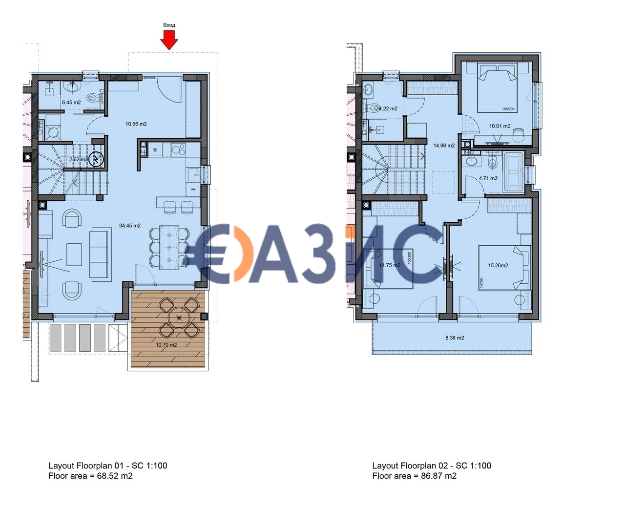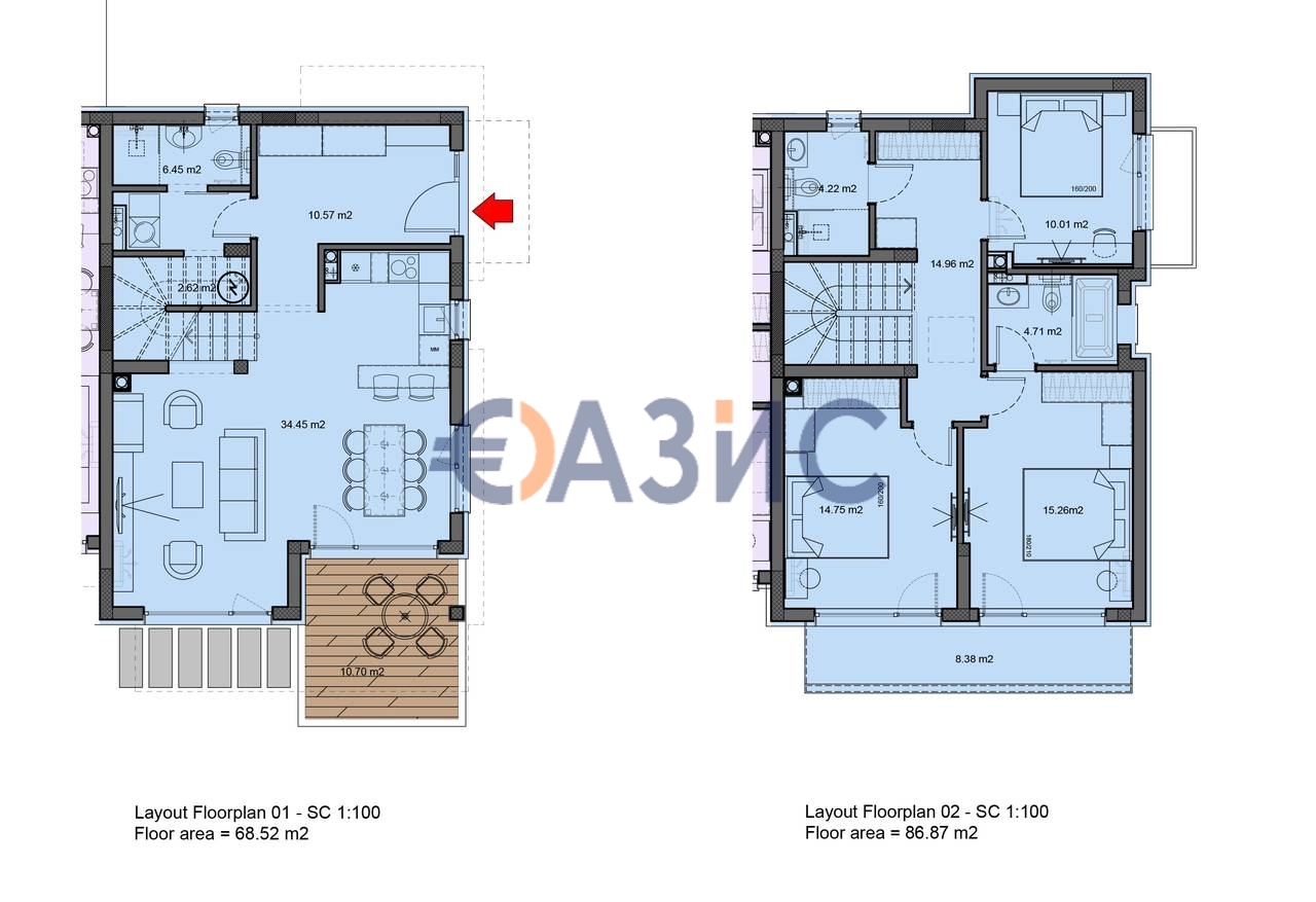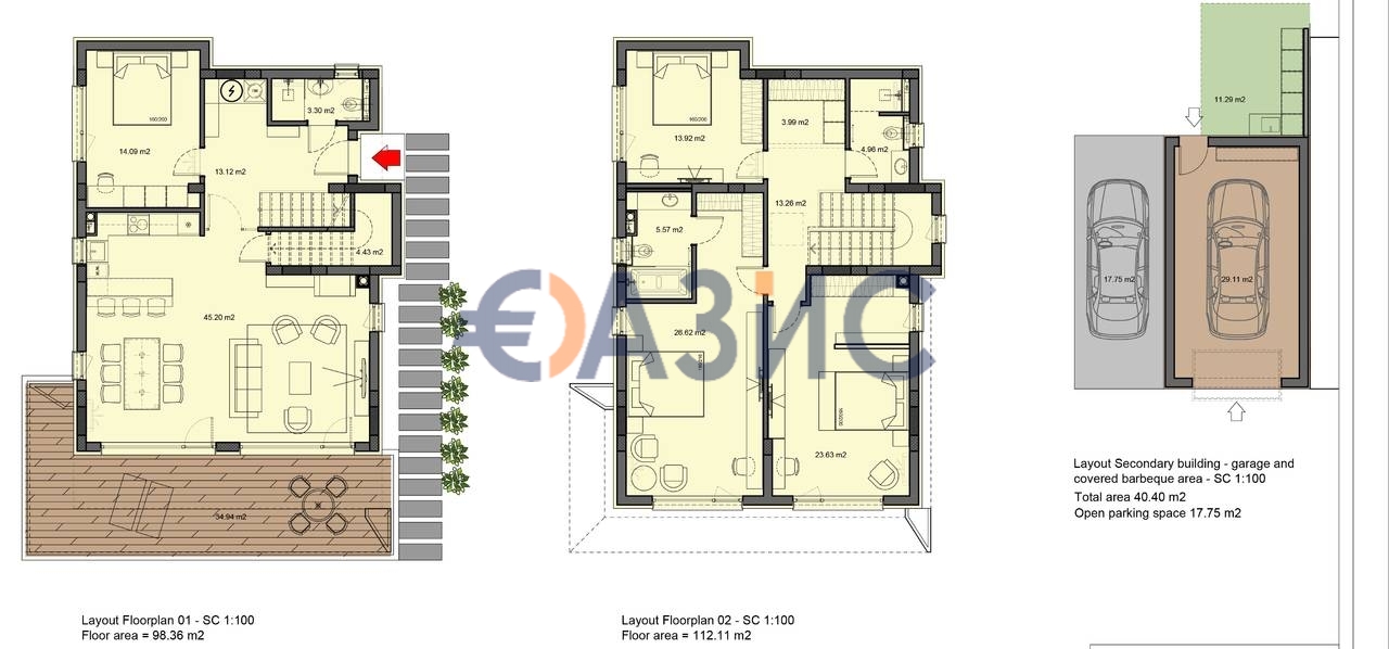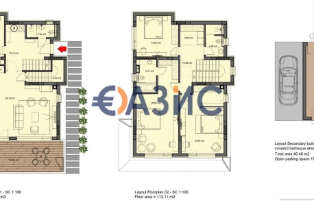 Обща площ: 193.81 кв. м., земя 158.58 кв. м (Тип 0)