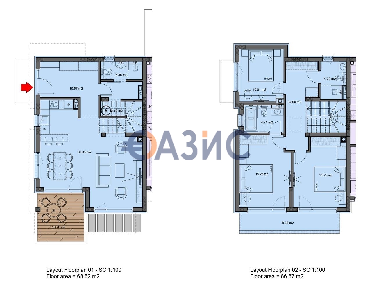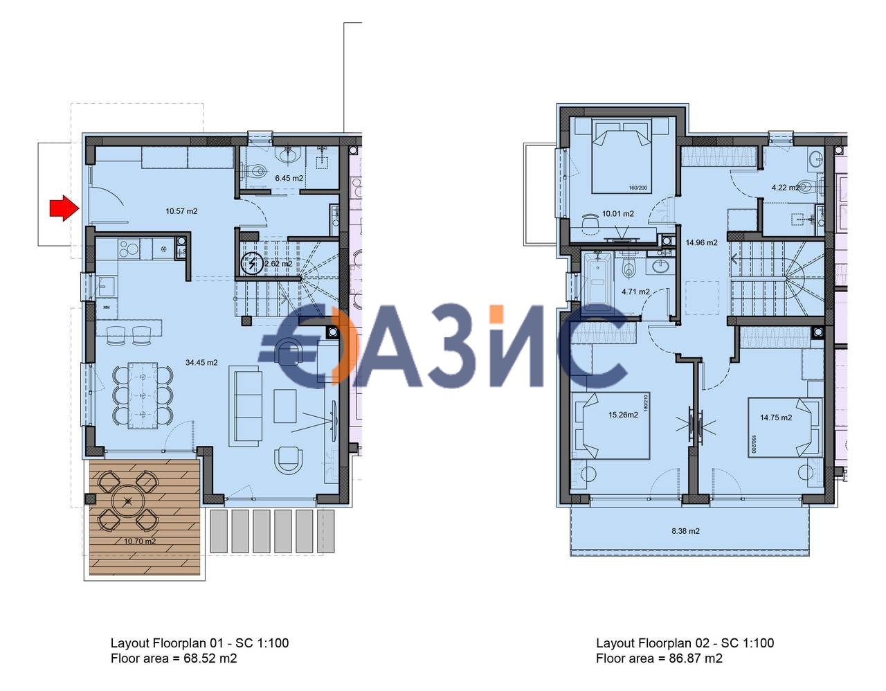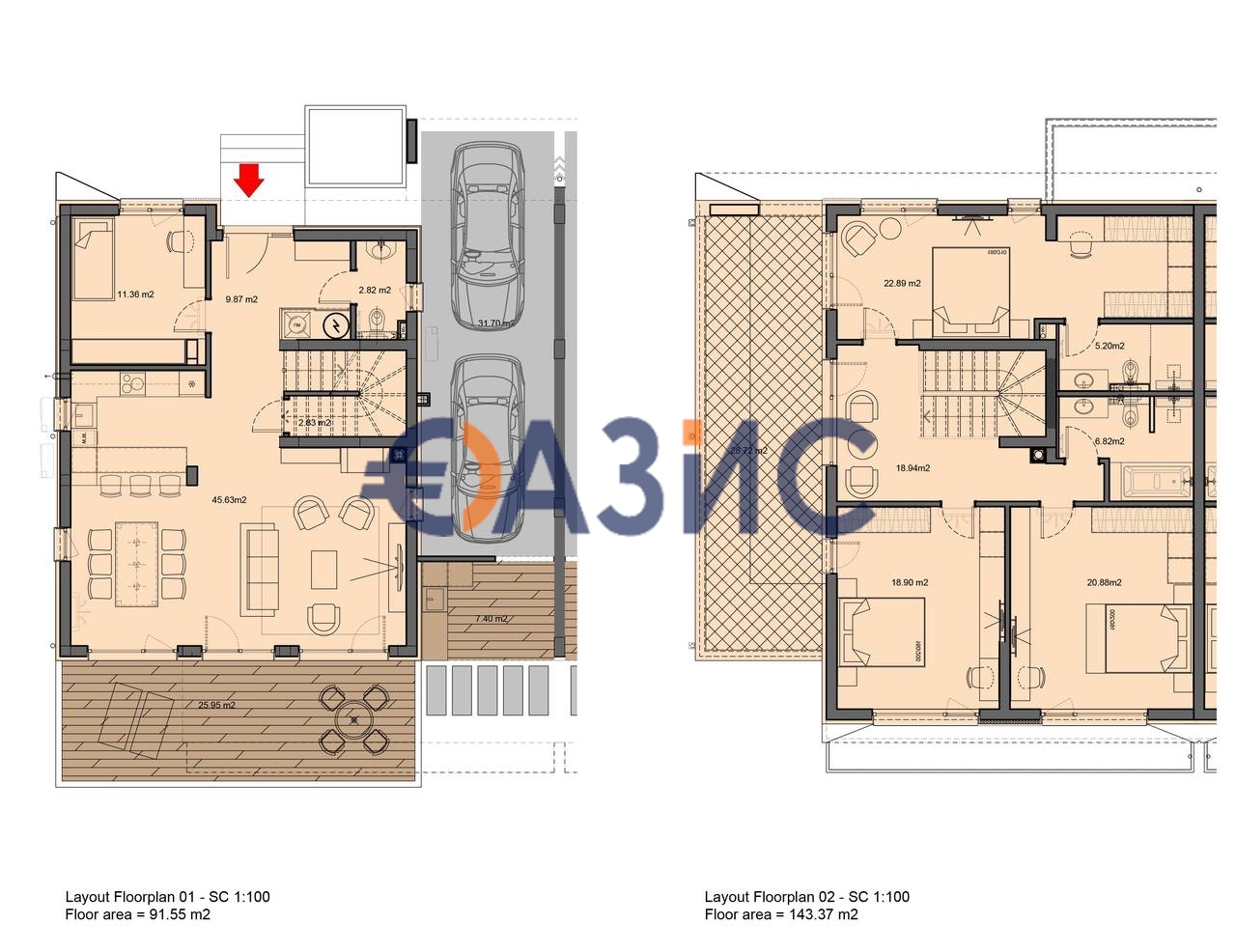 Обща площ: 193.81 кв. м., земя 158.58 кв. м (Тип 0)