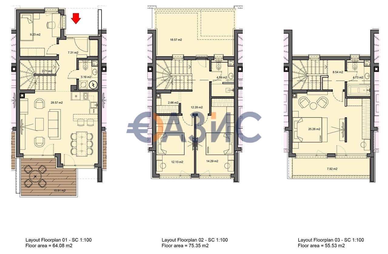– „До ключ“, с напълно завършен интериор, готови бани, монтирано осветление и климатици.