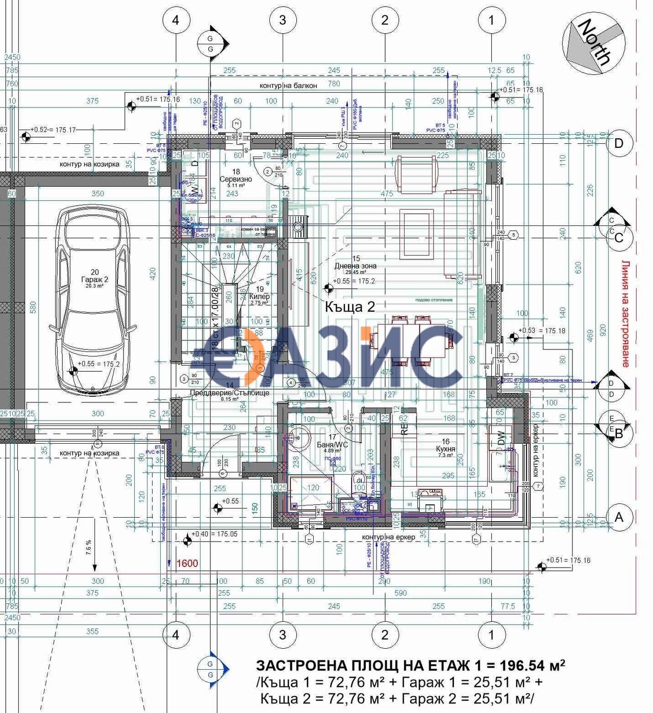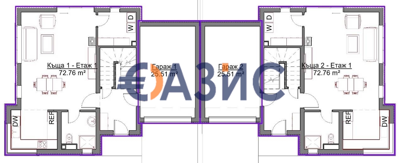 Предлагаме за продажба строящи се Къщи в мини-комплекс" 0 " без такса поддръжка. Комплексът е разположен на тиха улица сред тишина и чист въздух, заобиколен от приличен квартал. В западната част на комплекса е разположена дъбова горичка, през пътя на село Черешнев градина. Комплексът ще се състои от 6 къщи в австрийски стил с камина. Всяка къща има отделен парцел от 500 бр.Площ на всяка къща 208 кв .м + тераса 12,5 кв.м с топъл гараж за 1 кола. На приземния етаж на къщата има входно антре, просторна всекидневна с трапезария и кухненски бокс. От хола големи стъклени, плъзгащи се врати с достъп до двора с барбекю зона. От къщата и коридора има вход към гаража. На втория етаж има три просторни спални с капандури. Едната спалня е с балкон, другите две са с малки тераси, тоалетна и баня. Спалните са просторни, от коридора има достъп до тераса с изглед към черешовата градина.
