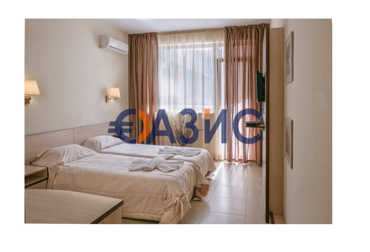 Предлага се за продажба 3-звезден хотел, който е напълно обзаведен с пълно оборудване. Хотелът се намира в западната част на най-големия и популярен морски курорт в България, Свети Влас . Хотелът е построен през 2007 година. Хотелът е заобиколен от други хотели и има изключително местоположение с плаж в непосредствена близост към морето и в същото време, в близост до гората. Хотелът е с обща площ от 3 372 м2 и площ на парцела, на който е построен 1 200 м2. Настаняване (48 стаи): - 12 двустайни апартамента за 4 души; - 36 стаи за 2 души ; Стаите са оборудвани с 32-инчови телевизори, климатик / отопление, телефони (централен), минибар, бани с душ и сешоар, балкони, с изглед към морето, легла 100/200 см или двойни легла 200/200 см, сгъваеми столове. На всеки етаж има килер за прислужница. Освен стаи за гости хотелът разполага с голям ресторант за 60 посетители, с професионално оборудвана кухня, отговаряща на всички изисквания, лоби-бар, рецепция, 4 магазина, 1 сладкарницы със статут на кафе-Сладкарница, два огромни панорамни тераси на покрива на хотела, с барна, басейн за възрастни и деца, детска площадка, джакузи, спа център със сауна и стая за релакс и ароматерапия, конферентна зала. Отделно в сградата на хотела се отдават под наем две помещения-едно за кафе и второ за офис на Еконт. озеленяване, голям басейн, детски басейн, детска площадка, сауна, фитнес Сградата има: - два хидравлични асансьора с охладителна система