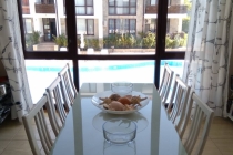 Четырехэтажное здание, построенное из качественных материалов для комфортного проживания в любое время года. Квартиры все просторные с 1 и 2 спальнями с разной планировкой и площадью – от 60 до 150 кв. м. – с видом на бассейн или на горы. Здание имеет акт 16.