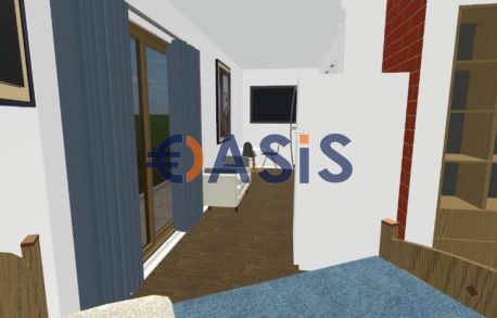 Die Zweizimmerwohnung besteht aus:Flur, Wohnzimmer, Küche, Schlafzimmer, Badezimmer, große Terrasse. Blick von der Terrasse auf die Straßen von Sonnenstrand und man sieht auch die Berge von St. Vlas.