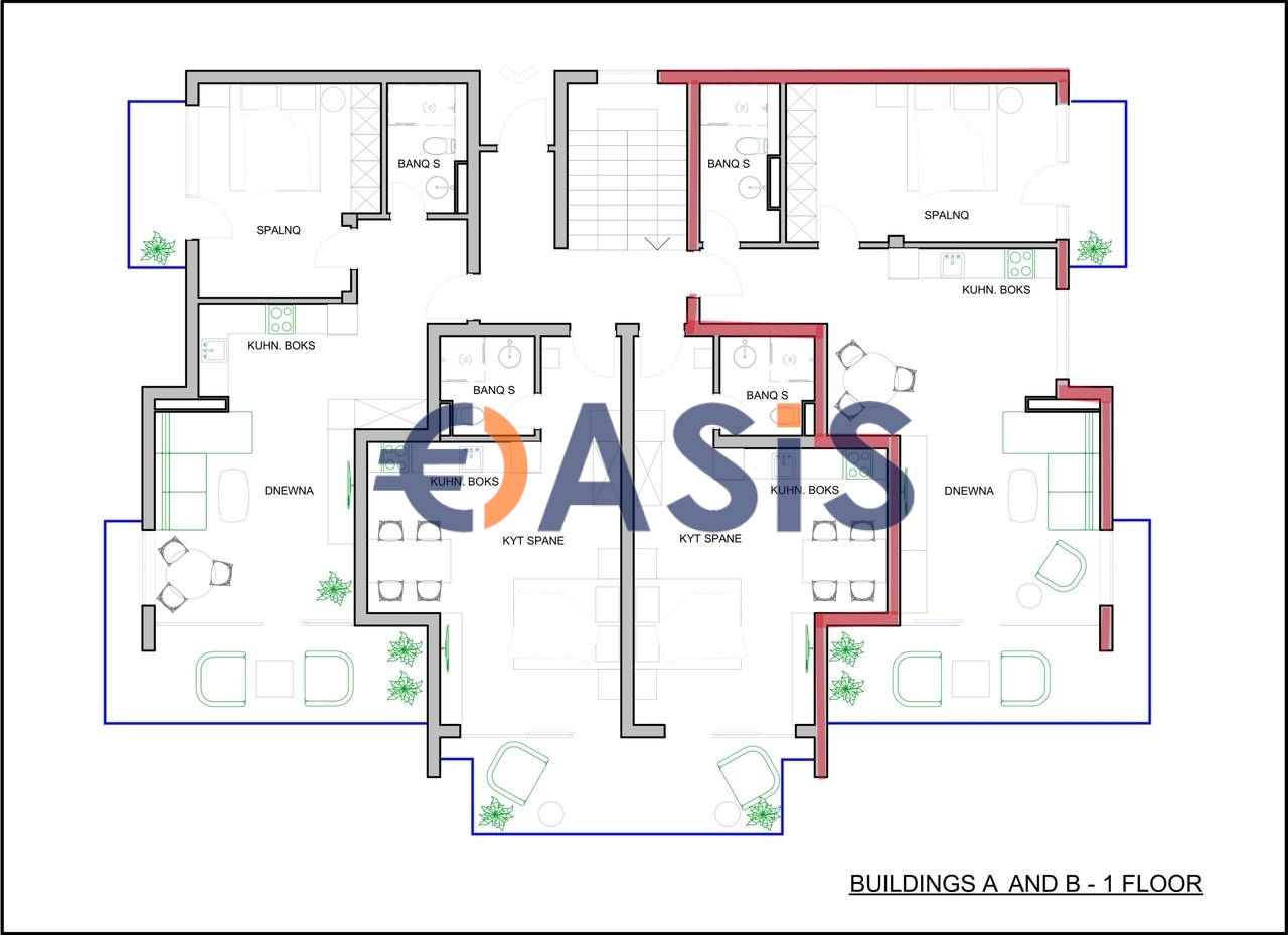 ID 34129504 Price: €179,322 Location: between Pomorie and Sarafovo (Burgas) Total area: 91.96 sq.m Maintenance fee: €10/sq.m per year Construction stage: under construction