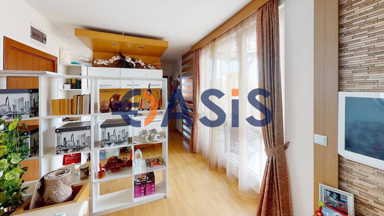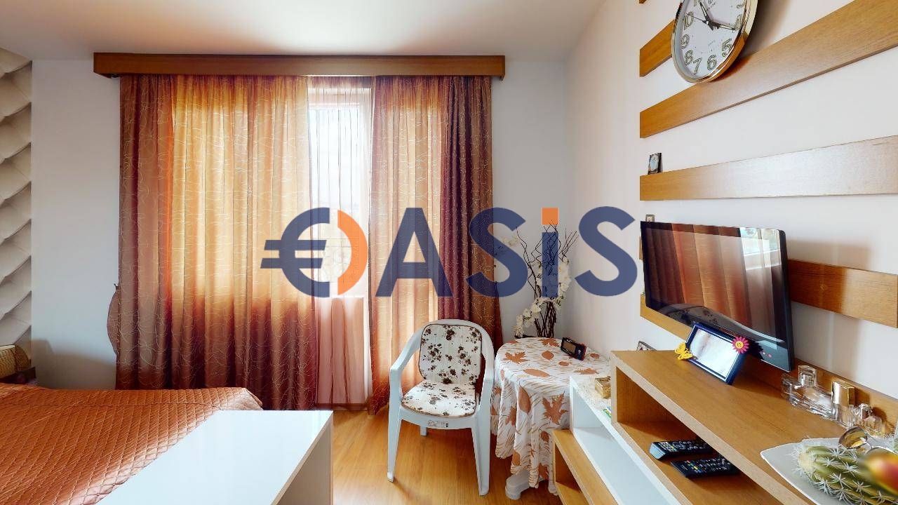 We offer for sale a 1-bedroom apartment in the Suite Hom-1 complex. It consists of a living room with a kitchen area, a bedroom, a bathroom, a large terrace. Sold with furniture and appliances. Ideal for both renting and year-round living. The gated complex Svit Homs 1 is located in the very center of Sunny Beach in a cozy area. Nearby there are restaurants, shops, banks open all year round, which is convenient for permanent residence. In the center of the territory of Svit Homs 1 there is a large swimming pool with a children's section, a playground, green alleys for walking, a SPA center with a Jacuzzi and sauna, a gym, Parking. The building was put into operation - act 16.